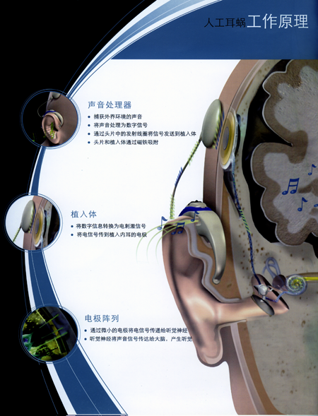 人工耳蝸(Cochlear Implant)是一種電子裝置,由體外言語處理器將聲音轉(zhuǎn)換為一定編碼形式的電信號,通過植入體內(nèi)的電極系統(tǒng)直接興奮聽神經(jīng)來恢復(fù)或重建聾人的聽覺功能。近年來,隨著電子技術(shù)、計算機技術(shù)、語音學、電生理學、材料學、耳顯微外科學的發(fā)展,人工耳蝸已經(jīng)從實驗研究進入臨床應(yīng)用?,F(xiàn)在全世界已把人工耳蝸作為治療重度聾至全聾的常規(guī)方法。